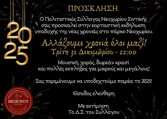 «Αλλάζουμε χρονιά όλοι μαζί»: Γιορτή υποδοχής του 2025 στο Νεοχώρι