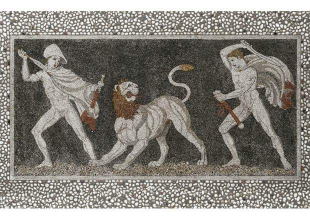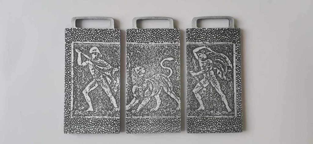 Ο Δήμαρχος Πέλλας Γρηγόρης Στάμκος, παρουσιάζει το μετάλλιο του 10ου Ημιμαραθωνίου – PELLA HALF MARATHON εμπνευσμένο από ψηφιδωτό δάπεδο Ελληνιστικής οικίας της Πέλλας, με θέμα το Κυνήγι του λιονταριού. Χρονολογείται στο 325-300 π.Χ. και εικάζεται ότι η παράσταση παραπέμπει σε μία ιστορία διάσωσης του Αλέξανδρου από τον στρατηγό και φίλο του Κρατερό, κατά τη διάρκεια κυνηγιού.