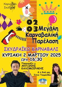 ώρα 16:30΄ με τη Μεγάλη Παρέλαση του «Σκυδραϊκού Καρναβαλιού». Την