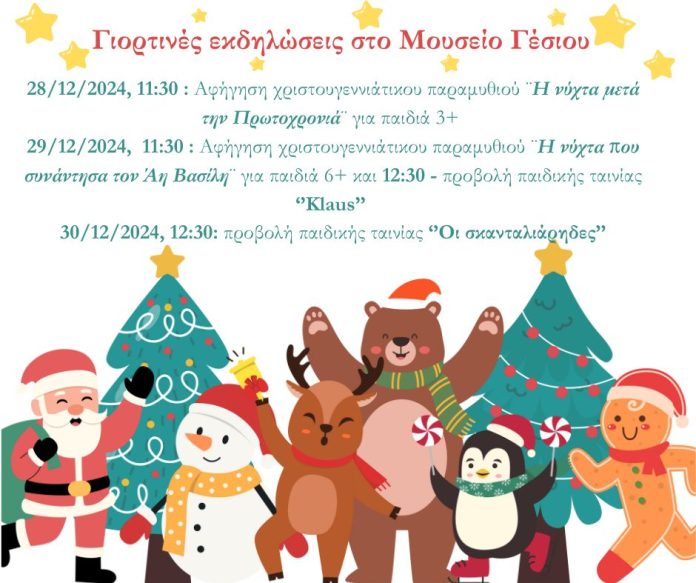 Με ιδιαίτερη χαρά σας ενημερώνουμε για τις γιορτινές εκδηλώσεις του Μουσείου Γέσιου που θα γίνουν στην ειδικά διαμορφωμένη αίθουσα εκδηλώσεων!