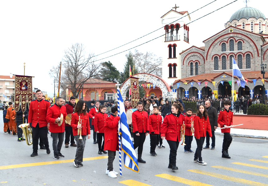 λοιπόν μπροστά από τον Ιερό Ναό σχηματίστηκε η πομπή με τη Δημοτική Φιλαρμονική,