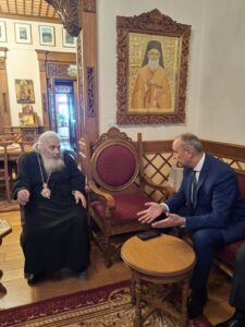 Ο κύκλος των συναντήσεων ξεκίνησε σε κλίμα αμοιβαιότητας στην Ιερά Μητρόπολη Εδέσσης, Πέλλας και Αλμωπίας. Ο κ. Καράογλου συναντήθηκε με τον Σεβασμιώτατο Μητροπολίτη κ.κ. Ιωήλ, όπου εξήρε το κοινωνικό έργο της Εκκλησίας, χαρακτηρίζοντάς το ως θεμέλιο λίθο για τη συνοχή των τοπικών κοινωνιών, ειδικά στις τρέχουσες προκλητικές συγκυρίες.