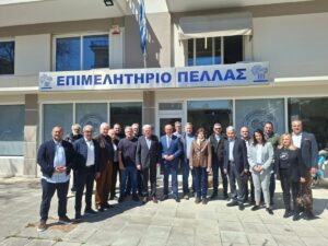 Ιδιαίτερη έμφαση δόθηκε στην επίσκεψη στο Επιμελητήριο Πέλλας. Σε μια ευρεία σύσκεψη με τον Πρόεδρο κ. Ιορδάνη Τσώτσο, εκπροσώπους του Εμπορικού Συλλόγου και της Ομοσπονδίας Επαγγελματοβιοτεχνών, ο κ. Καράογλου άκουσε τους προβληματισμούς της αγοράς.