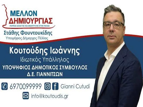 Ιωάννης Κουτούδης του Γεωργίου, υποψήφιος με τη παράταξη ¨Μέλλον Δημιουργίας” και υποψήφιο δήμαρχο τον Στάθη Φουντουκίδη