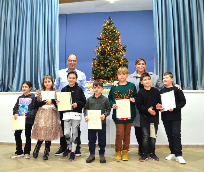 Επίσης, σήμερα, τόνισε στη συνέχεια, τιμάμε τα παιδιά μας που διακρίθηκαν σε πανελλαδικούς και περιφερειακούς εκπαιδευτικούς διαγωνισμούς. Με τον τρόπο αυτό αναγνωρίζεται η προσπάθεια, ο αγώνας, οι κόποι που καταβάλλουν οι μαθητές, οι εκπαιδευτικοί, οι γονείς κι οδηγούν στην επιτυχία. Παράλληλα μέσα απ΄αυτήν την εκδήλωση θέλουμε να ενθαρρύνουμε τα παιδιά να συνεχίσουν με σταθερά βήματα εμπρός, να προσπαθούν για την πρόοδο, για την κατάκτηση της γνώσης και την καλλιέργεια της παιδείας.