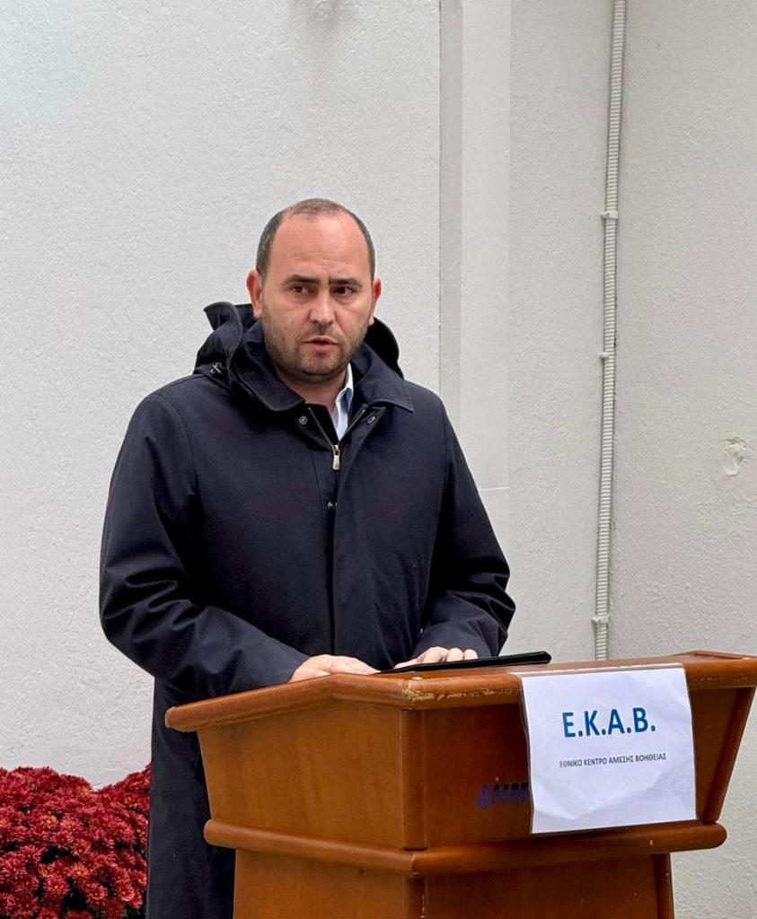 στην τελετή εγκαινίων του ανακαινισμένου Τομέα ΕΚΑΒ Έδεσσας, παρουσία του Προέδρου του ΕΚΑΒ κ. Ν. Παπαευσταθίου, του Διοικητή της 3 ης ΥΠΕ κ. Δ. Τσαλικάκη, καθώς και άλλων μελών της διοίκησης.