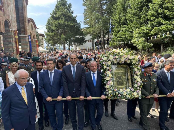 Στην Πανορθόδοξη και Πανελλήνια γιορτή της Κοιμήσεως της Θεοτόκου, στο Ιερό Προσκύνημα «Παναγία Σουμελά», στο Βέρμιο, παραβρέθηκε χθες, 15 Αυγούστου 2023, ο Υφυπουργός Αγροτικής Ανάτυξης και Τροφίμων και Βουλευτής Πέλλας, Διονύσης Σταμενίτης, εκπροσωπώντας τον Πρωθυπουργό, Κυριάκο Μητσοτάκη.