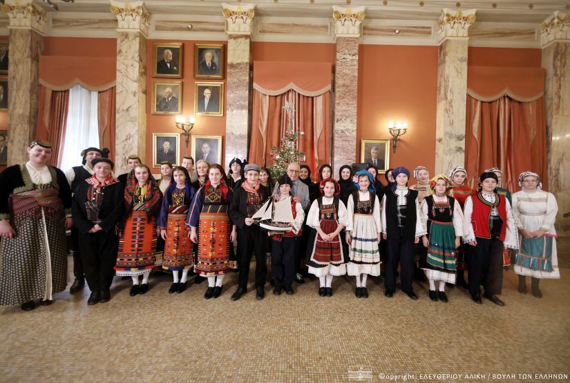 Τις παραδοσιακές μελωδίες και τα κάλαντα έψαλαν στον Πρόεδρο της Βουλής τα παιδιά από το Νηπιαγωγείο της Βουλής, το Πανελλήνιο Σωματείο Γονέων Κηδεμόνων Φίλων ΑμεΑ «ΕΡΜΗΣ» καθώς και η Χορωδία του Συλλόγου των Υπαλλήλων της Βουλής. Το εορταστικό πρόγραμμα πλαισίωσαν με χορούς και τοπικά κάλαντα μέλη εθνικοτοπικών συλλόγων, όπως ο Όμιλος Βρακοφόρων Κρήτης, το Λύκειο των Ελληνίδων, η Παναρκαδική Ομοσπονδία Ελλάδος, ο Χορευτικός και Πολιτιστικός Σύλλογος «Δερόπολη» Βορείου Ηπείρου και ο Φιλανθρωπικός Σύλλογος «Η Αγκαλιά».