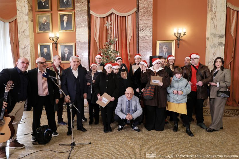Μέσα σε μια λαμπερή και εορταστική ατμόσφαιρα, το Μέγαρο της Βουλής υποδέχθηκε σήμερα τις μελωδίες της παράδοσης, καθώς κάλαντα και χοροί από κάθε γωνιά της πατρίδας μας πλημμύρισαν τους χώρους του Κοινοβουλίου και μετέφεραν το χαρμόσυνο μήνυμα των Χριστουγέννων.