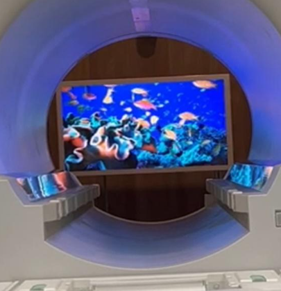 Έτσι λοιπόν, τοποθετήθηκε συμβατό με τον μαγνητικό τομογράφο έγχρωμο LED monitor, που δίνει την δυνατότητα στους εξεταζόμενους να επιλέξουν και να παρακολουθήσουν οποιοδήποτε video καθ’ όλη τη διάρκεια της εξέτασης. Αυτή η ενέργεια έχει συμβάλει στην καλύτερη εκτέλεση της εξέτασης, κάνοντας το ιατρείο και τις διαγνωστικές εξετάσεις περισσότερο φιλικές στους εξεταζόμενους.