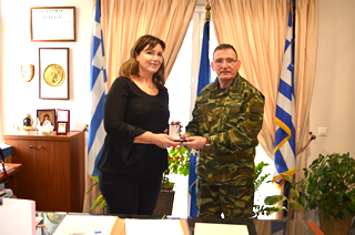 Ο Υποστράτηγος ευχαρίστησε για την υποδοχή και την ενημέρωση και πρόσφερε στη Δήμαρχο αναμνηστική πλακέτα της Μεραρχίας.