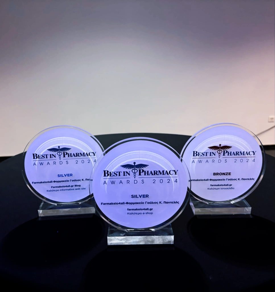 Με μεγάλη χαρά σας ανακοινώνουμε, ότι το Farmakeio4all-Φαρμακείο Γούλιος Κ. Παντελής, βραβεύτηκε στην καθιερωμένη πανελλήνια διοργάνωση Best in Pharmacy Awards, με συνολικά 3 βραβεία, επιβεβαιώνοντας την ανοδική πορεία μας στον χώρο, με καινοτόμες υπηρεσίες και προϊόντα.