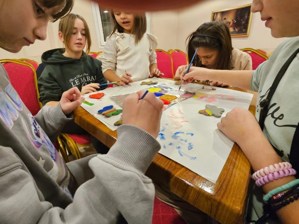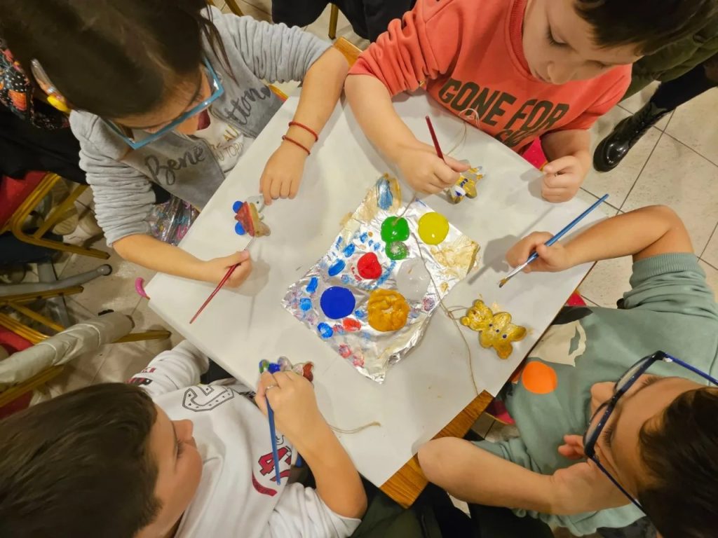 Νωρίτερα της ίδιας ημέρας, οι μικροί μας φίλοι και οι μικρές μας φίλες δημιούργησαν όμορφα στολίδια, τα οποία και χρωμάτισαν με τη βοήθεια των υπευθύνων των καλλιτεχνικών δράσεων της ενορίας και στη συνέχεια στόλισαν το χριστουγεννιάτικο δέντρο στην αυλή.