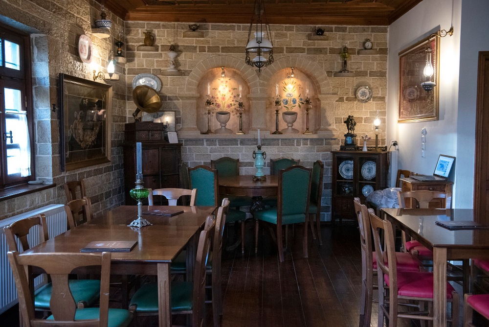 Σε έναν όμορφο και περιποιημένο χώρο, αυτό που κάποτε ήταν το πατρικό σπίτι της Βιργινίας, η τοπική κουζίνα δίνει μαθήματα πατριδογνωσίας.