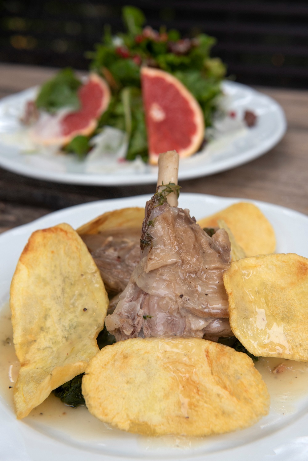 Ανέλαβε τα ηνία και το αποτέλεσμα είναι εξαιρετικό. Το μενού του εστιατορίου περιλαμβάνει προβατίνα με πράσο στη γάστρα, γίδα βραστή, διάφορες πίτες, αλλά και το πιάτο σφραγίδα που ονομάζεται «Το πιάτο της Αρκούδας».