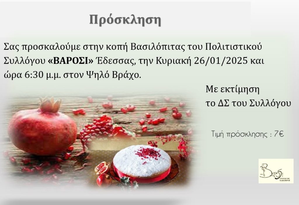 ΑρχικήΤοπικάΈδεσσαO Πολιτιστικός Σύλλογος Βαρόσι κόβει την βασιλόπιτα O Πολιτιστικός Σύλλογος Βαρόσι κόβει την βασιλόπιτα ΈδεσσαΚοινωνία Δημοσιευτηκε στις 20 Ιανουαρίου, 2025 γράφει ο Χρήστος Δημητριάδης FacebookTwitterWhatsAppLinkedinΗΛΕΚΤΡΟΝΙΚΗ ΔΙΕΥΘΥΝΣΗΕκτύπωσηViberCopy URL Ο Πολιτιστικός Σύλλογος ΒΑΡΟΣΙ Έδεσσας, σας προσκαλεί στην κοπή Βασιλόπιτας την Κυριακή 26 Ιανουαρίου και ώρα 6:30 μ.μ. στον Ψηλό Βράχο. Με εκτίμηση το ΔΣ του Συλλόγου Προσφατα αρθρα e-Publishing ΝΕΑ ΤΗΣ ΠΕΛΛΑΣ – ΑΡΙΘΜΟΣ ΦΥΛΛΟΥ: 1294 ΕΤΟΣ: 6ο | Τρίτη 18 Νοεμβρίου 2025 📖 Το νέο φύλλο της εφημερίδας Νέα της Πέλλας – Η ψηφιακή του έκδοση... 18 Νοεμβρίου, 2025 Αθλητικά Φωνή Αγωνίας και Αξιοπρέπειας στην Έδεσσα: Το Χρονικό της Αθλητικής Απαξίωσης Φωνή Αγωνίας και Αξιοπρέπειας Ρεπορτάζ: Μίλτος Παπαδημητρίου Η συγκέντρωση γονέων, αθλητικών συλλόγων και σωματείων στο Δημοτικό... 17 Νοεμβρίου, 2025 Αθλητικά Ο ΑΕΡΩΠΟΣ ΕΔΕΣΣΑΣ πανηγύρισε μια άνετη νίκη απέναντι στην ομάδα της Πυλαίας Ο ΑΕΡΩΠΟΣ ΕΔΕΣΣΑΣ πανηγύρισε μια άνετη νίκη Ο ΑΕΡΩΠΟΣ ΕΔΕΣΣΑΣ πανηγύρισε μια άνετη νίκη απέναντι... 17 Νοεμβρίου, 2025 Ανακοινώσεις 17 Νοέμβρη 2025 – Δυο λόγια με αφορμή την επέτειο του Πολυτεχνείου Η σημερινή επέτειος είναι μέρα χρέους απέναντι στα παιδιά που θυσιάστηκαν για να διώξουν... 17 Νοεμβρίου, 2025 Παρομοια αρθρα e-Publishing ΝΕΑ ΤΗΣ ΠΕΛΛΑΣ – ΑΡΙΘΜΟΣ ΦΥΛΛΟΥ: 1294 ΕΤΟΣ: 6ο | Τρίτη 18 Νοεμβρίου 2025 📖 Το νέο φύλλο της εφημερίδας Νέα της Πέλλας – Η ψηφιακή του έκδοση... 18 Νοεμβρίου, 2025 Αθλητικά Φωνή Αγωνίας και Αξιοπρέπειας στην Έδεσσα: Το Χρονικό της Αθλητικής Απαξίωσης Φωνή Αγωνίας και Αξιοπρέπειας Ρεπορτάζ: Μίλτος Παπαδημητρίου Η συγκέντρωση γονέων, αθλητικών συλλόγων και σωματείων στο Δημοτικό... 17 Νοεμβρίου, 2025 Αθλητικά Ο ΑΕΡΩΠΟΣ ΕΔΕΣΣΑΣ πανηγύρισε μια άνετη νίκη απέναντι στην ομάδα της Πυλαίας Ο ΑΕΡΩΠΟΣ ΕΔΕΣΣΑΣ πανηγύρισε μια άνετη νίκη Ο ΑΕΡΩΠΟΣ ΕΔΕΣΣΑΣ πανηγύρισε μια άνετη νίκη απέναντι... 17 Νοεμβρίου, 2025